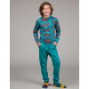 Modrozelené dětské tepláky vyrobené z organické bavlny. Hypoalergenní, jemné k citlivé pokožce, poddajné a odolné.